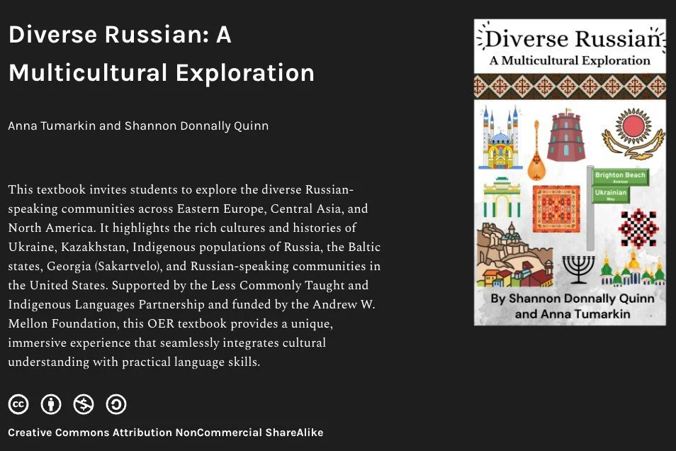 Quinn’s response was to create an open educational resource (OER) that shifts the focus from Russia to the many diverse cultures and communities that speak Russian around the world. Working closely with colleague, Anna Tumarkin, Russian Language Program Director at the University of Wisconsin-Madison, together they developed the OER, Diverse Russian: A Multicultural Exploration, that launched in August 2024. The project was supported by the Less Commonly Taught and Indigenous Languages Partnership and funded by the Andrew W. Mellon Foundation.